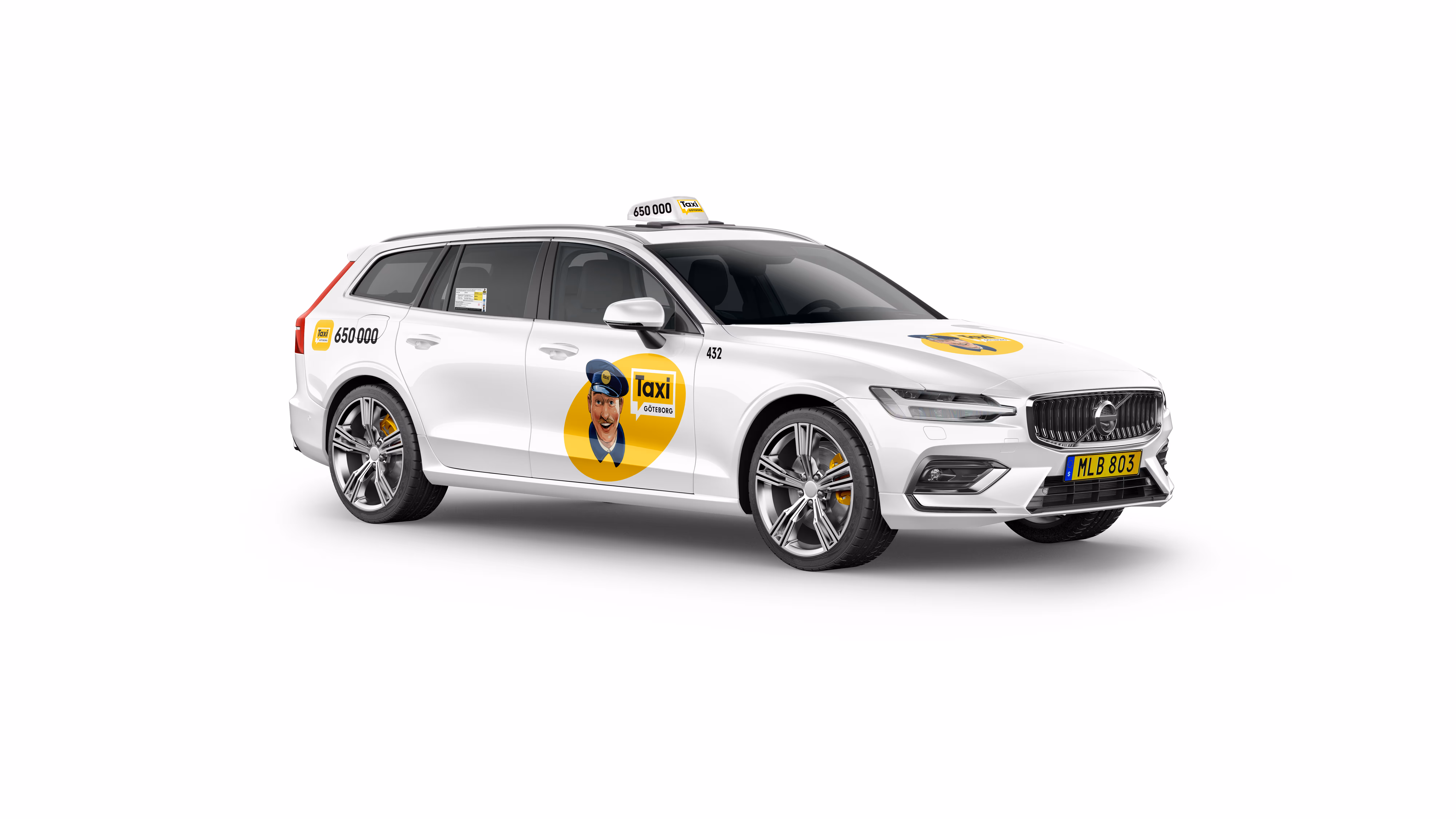 To make sure you're getting into a Taxi Göteborg car, look for Stig, the cheerful taxi guy, on the vehicle.